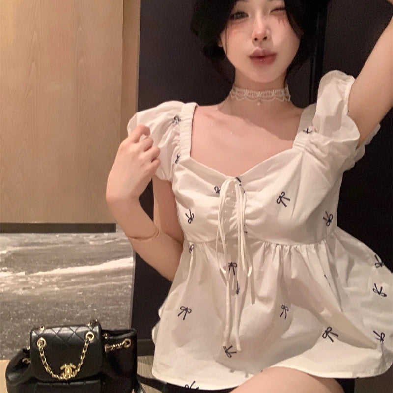 Imprimé Nœud MignonMotifs nœuds délicats pour un style doux, féminin et tendance. Manches Bouffantes ÉlégantesDes...