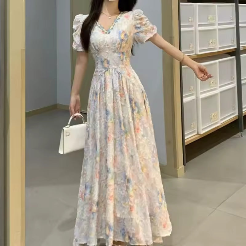 Fresh Summer Vacation Style The summer V-neck floral dress is designed for effortless elegance during...